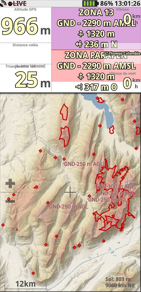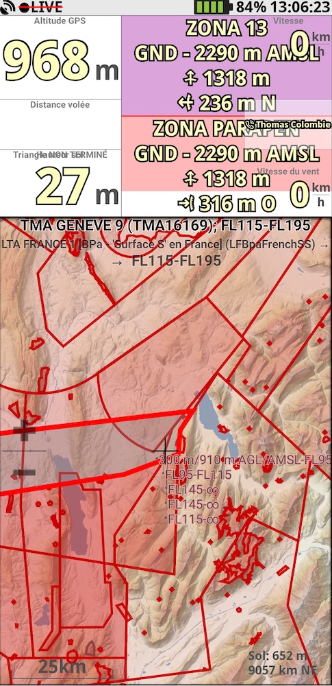 Comme pour XCTrack, un contrôle visuel sur la carte avant le décollage permet de s’assurer que les bulles de quiétude sont bien affichées et à jour.