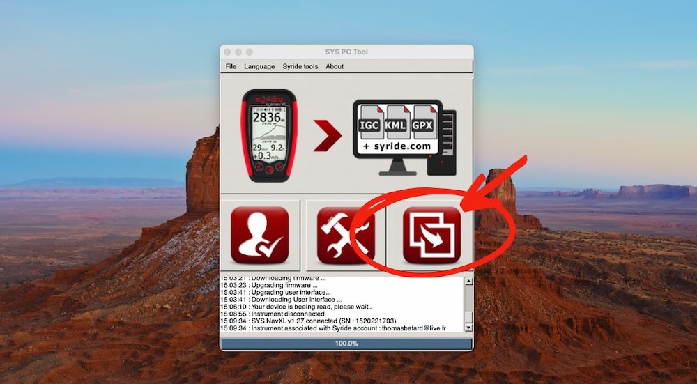 2. Branche ton Syride à l’ordinateur (ou connecte-toi via l’application).
