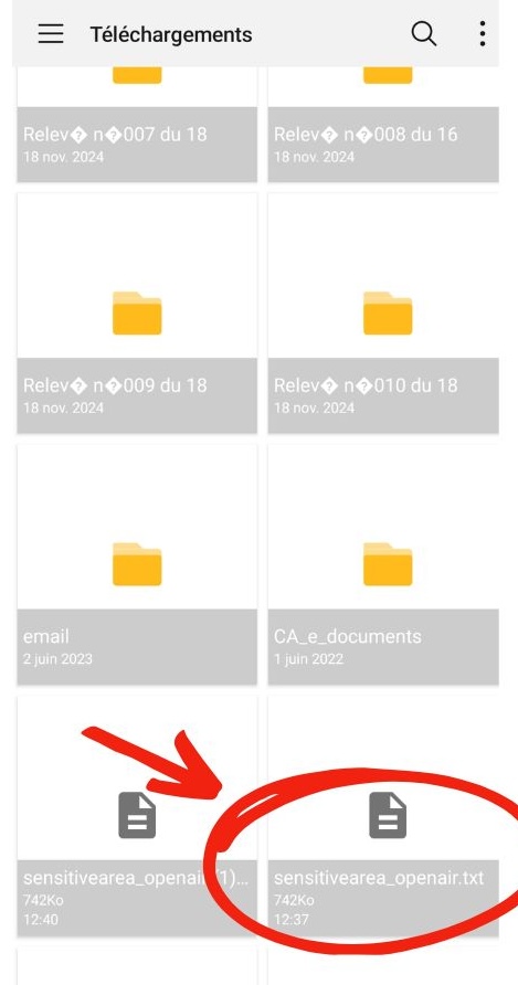 1. Télécharge le fichier OpenAir depuis Biodiv’Sports sur ton portable (.txt)